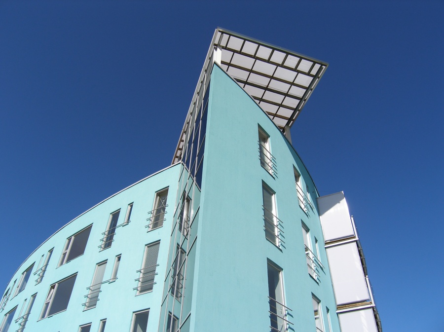 Plaanilt kala meenutav mereäärne kortermaja katuseterrassidega