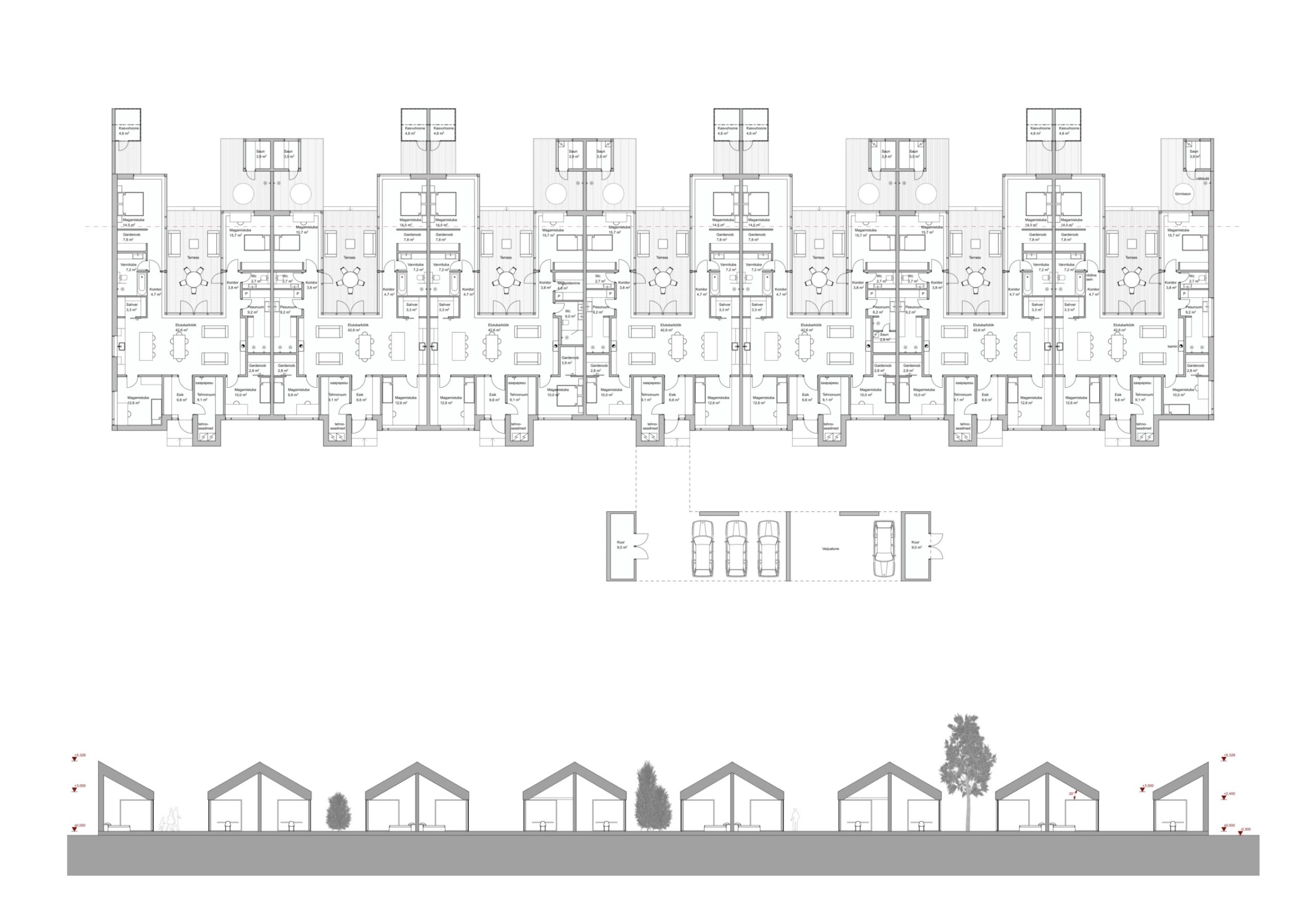 Eramaja tundega ridaelamu projekt.
