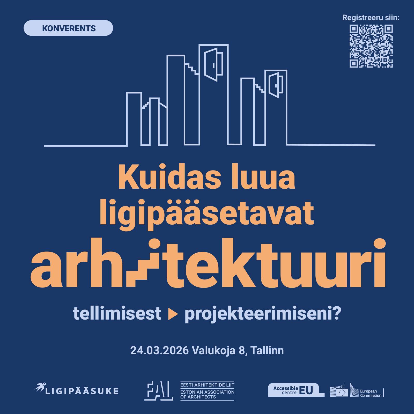 Teisipäeval, 24. märtsil korraldavad Euroopa ligipääsetavuse infokeskus Accessible EU, ligipääsetavuse nõustamise agentuur Ligipääsuke ja Eesti Arhitektide Liit ligipääsetavuse konverentsi ahitektidele, tellijatele, projekteerijatele ja ehitajatele.