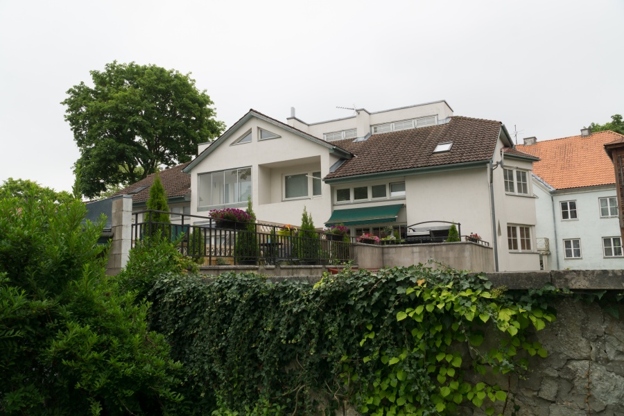 Vanalinna piiratud tingimustes, erinevatele tasepindadele projekteeritud nelja korteriga ridaelamu,
