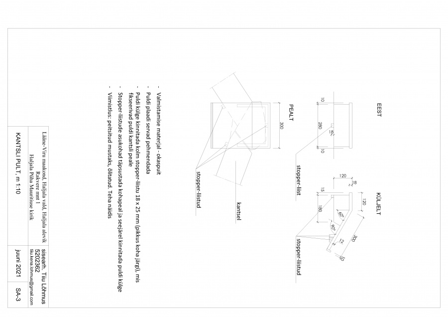 Lahendati detailide restaureerimine, uus paigutus ja lisati uusi detaile