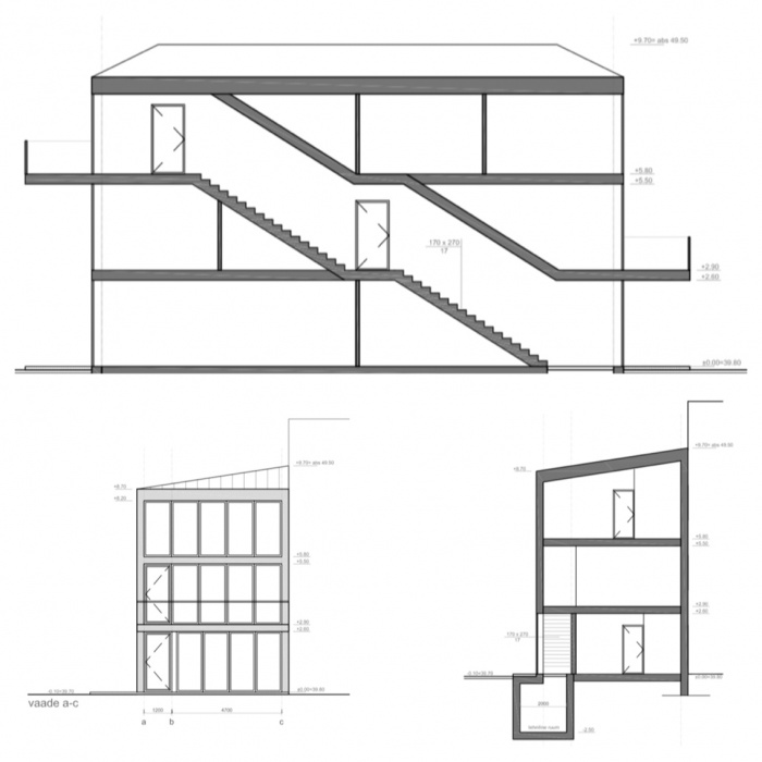 Lai 24 planeering on jäik ja arhitektile erilist mänguruumi ei jäta. Hoone on lahendatud lihtsa trepikojaga kaldkatusegaristtahukana. Trepp eristab maja teistest vanalinna kruntidest ja lisab sellele hoogu, elu muudavad mugavamaks 3 avarat terrassi.